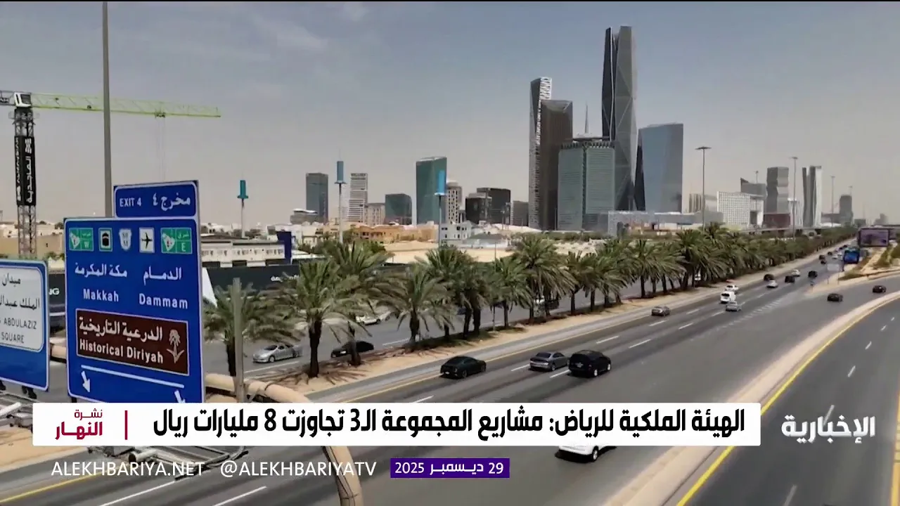 أعلنت الهيئة الملكية لمدينة الرياض بدء تنفيذ مشاريع المجموعة الـ 3 من برنامج تطوير محاور الطرق بتكلفة تتجاوز 8 مليارات ريال