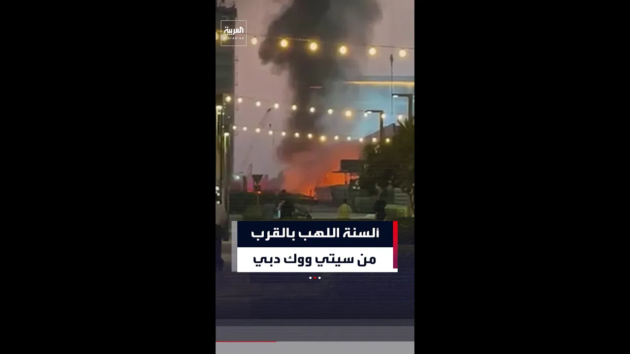 تصاعد ألسنة اللهب والدخان بعد سقوط مسيرة إيرانية بالقرب من منطقة سيتي ووك في دبي
