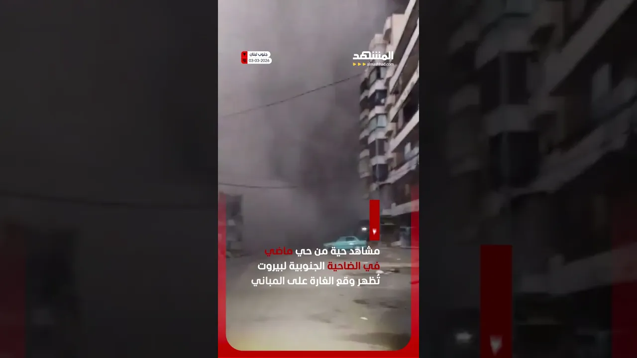 مشاهد حية من حي ماضي في الضاحية الجنوبية لبيروت تُظهر وقع الغارة على المباني والشوارع #اخبار_المشهد