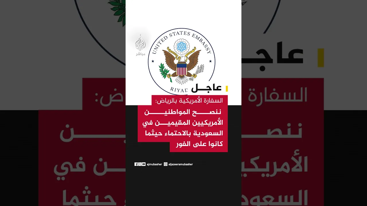 السفارة الأمريكية في الرياض: ننصح المواطنين الأمريكيين المقيمين في السعودية بالاحتماء حيثما كانوا