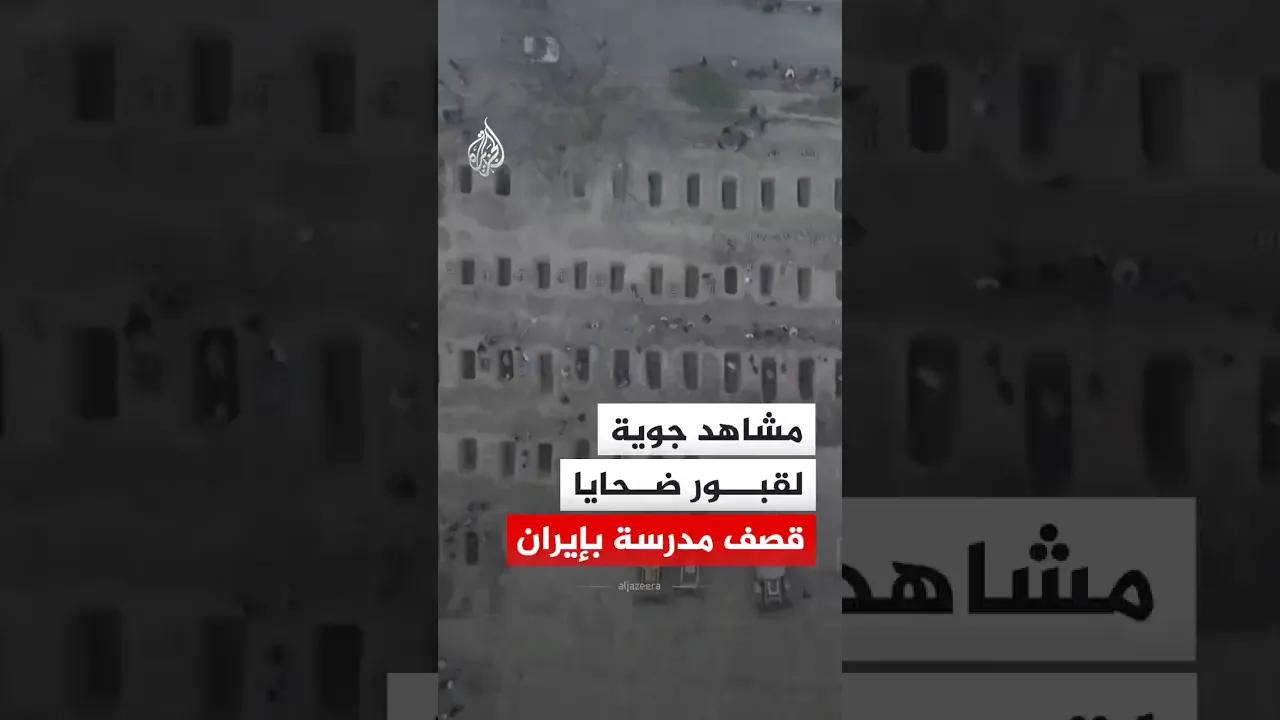 مشاهد جوية لقبور ضحايا القصف الإسرائيلي على مدرسة ابتدائية للبنات في مدينة ميناب بمحافظة هرمزغان جنوبي إيران. وكانت وسائل إعلام إيرانية أفادت بمقتل أكثر من 160 شخصا في غارة على مدرسة للبنات في اليوم الأول من الهجمات الأمريكية والإسرائيلية.
