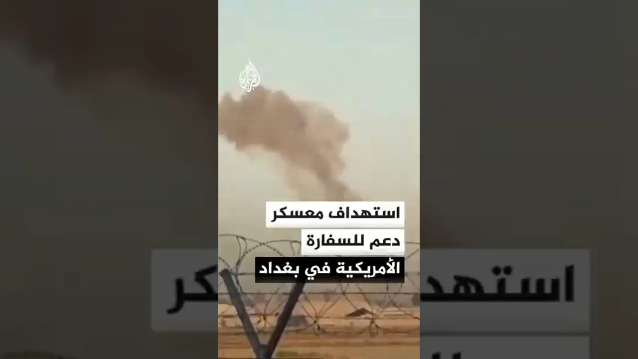 تصاعد الدخان من محيط معسكر الدعم اللوجستي للسفارة الأمريكية قرب مطار بغداد عقب استهدافه بطائرة مسيرة