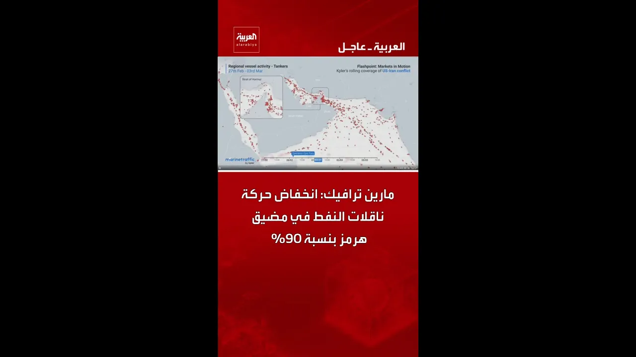 مارين ترافيك: انخفاض حركة ناقلات النفط في مضيق هرمز بنسبة 90%