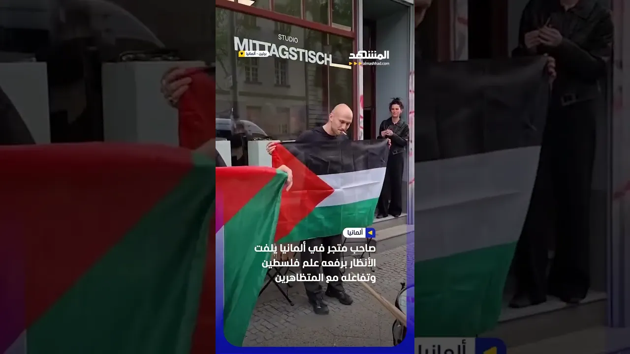 صاحب متجر في ألمانيا يلفت الأنظار برفعه علم فلسطين وتفاعله مع المتظاهرين #اخبار_المشهد