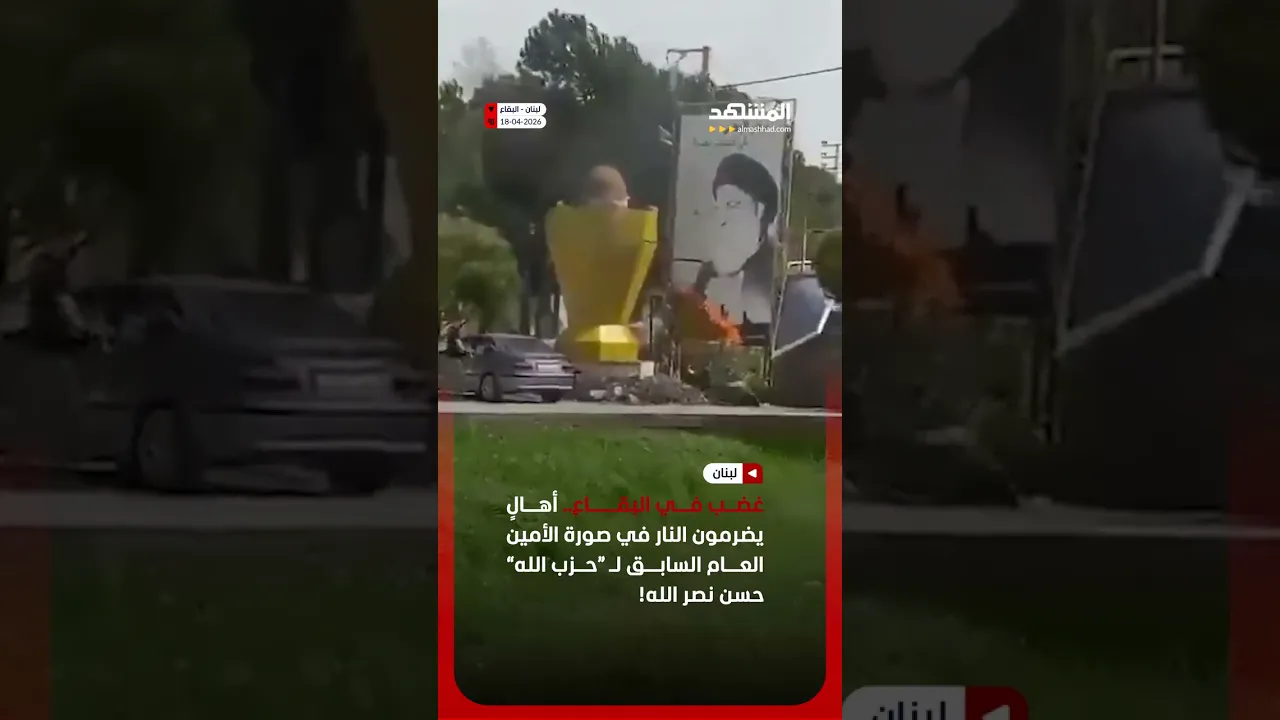 أهالٍ غاضبون يمزقون ويحرقون صورة حسن نصر الله في البقاع بلبنان!