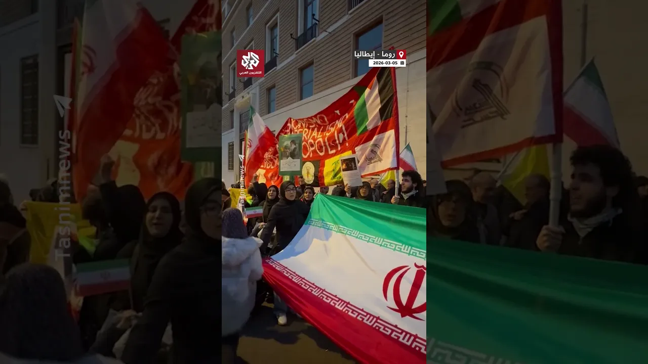 إيرانيون يتظاهرون ضد الحرب على بلادهم أمام سفارة الولايات المتحدة الأمريكية في روما