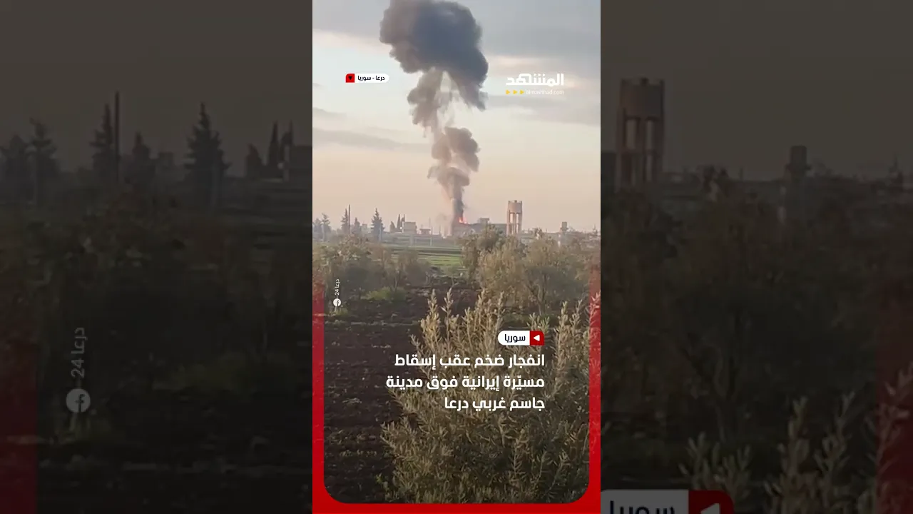 انفجار ضخم عقب إسقاط مسيّرة إيرانية فوق مدينة جاسم غربي درعا #اخبار_المشهد