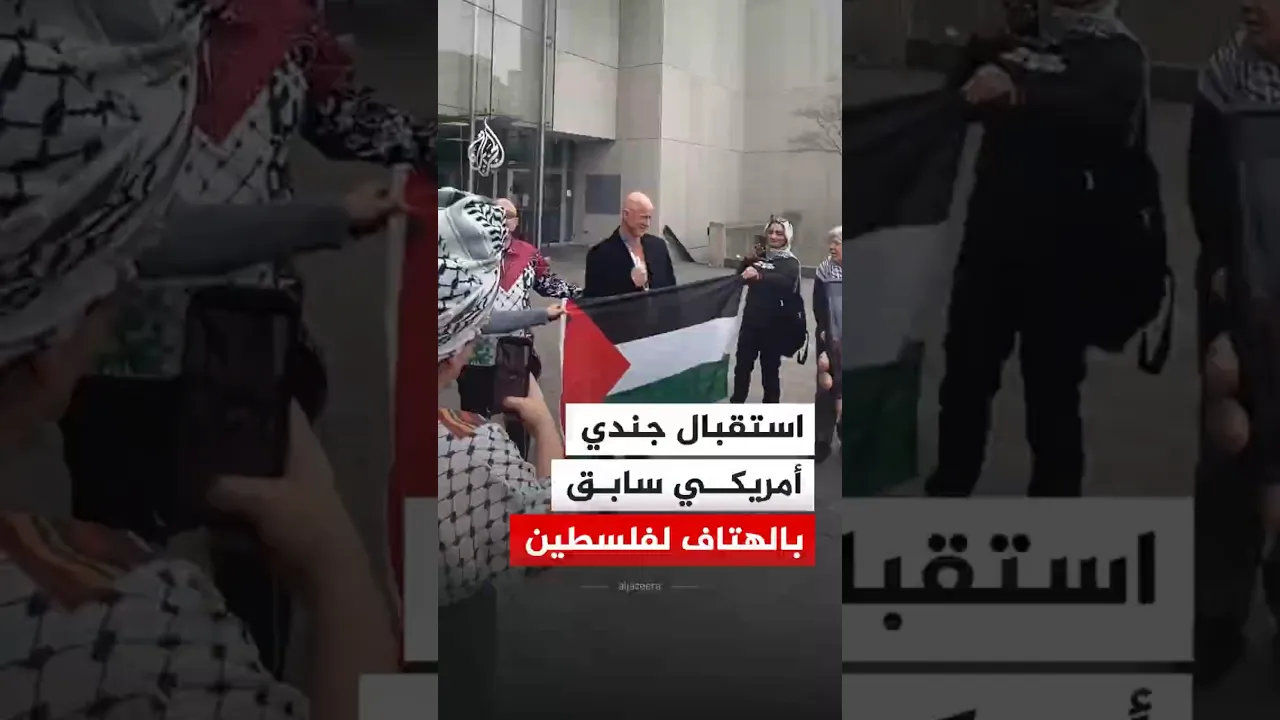 استقبال الجندي السابق في مشاة البحرية الأمريكية برايان ماكغينيس بالهتاف لفلسطين عقب إطلاق سراحه.