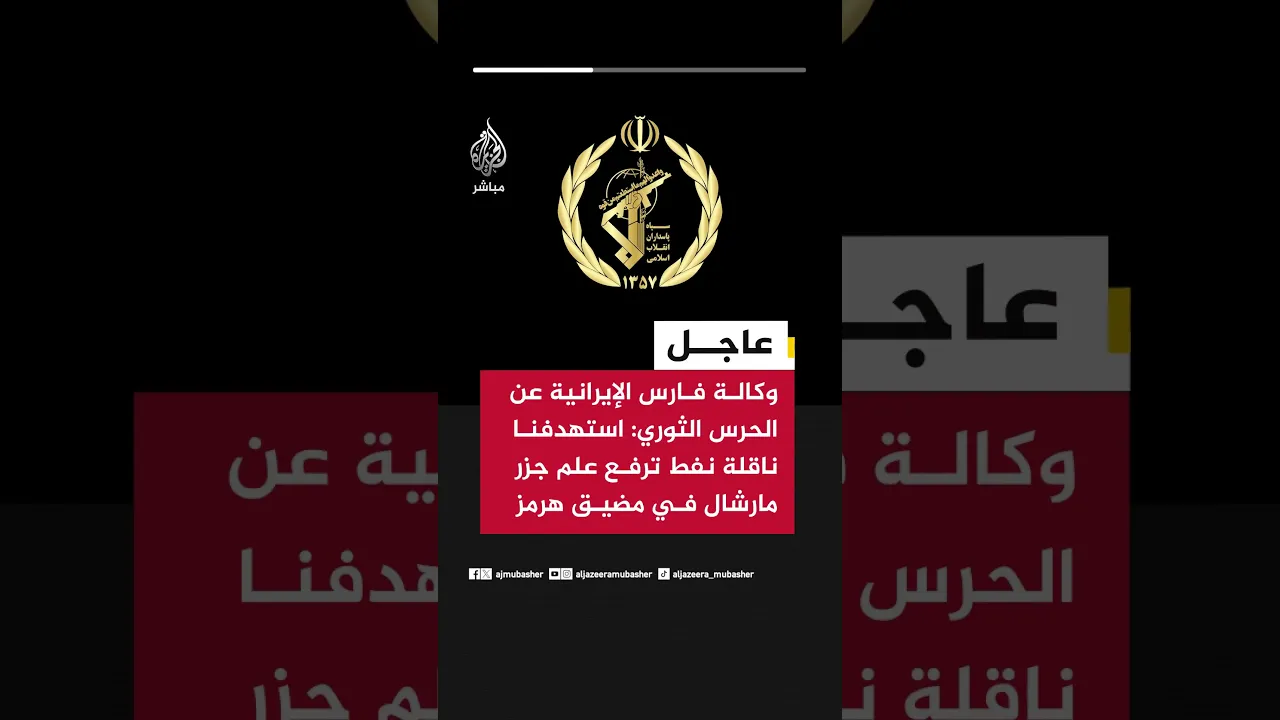 وكالة فارس الإيرانية عن الحرس الثوري: استهدفنا ناقلة نفط ترفع علم جزر مارشال في مضيق هرمز