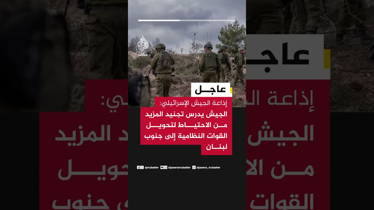 عاجل | إذاعة الجيش الإسرائيلي: الجيش يدرس تجنيد المزيد من الاحتياط لتحويل القوات النظامية إلى جنوب #لبنان