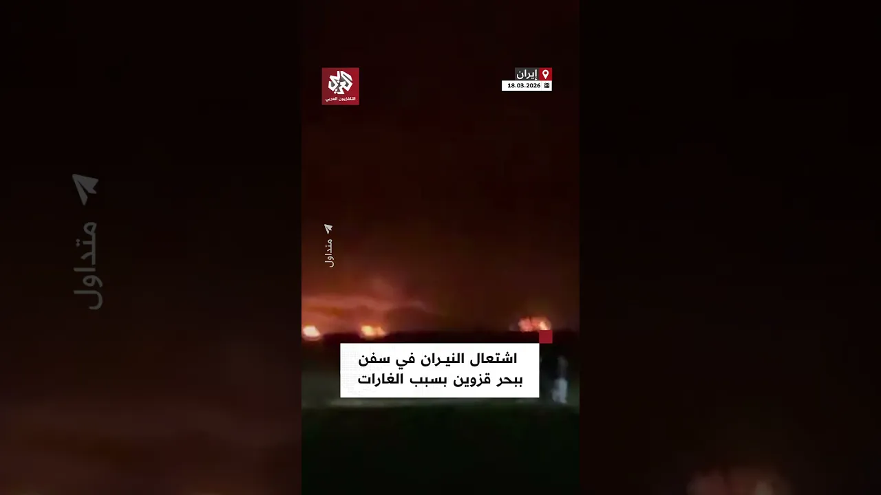 اشتعال النيران في سفن ببحر قزوين جراء هجوم أميركي إسرائيلي على بندر انزلي