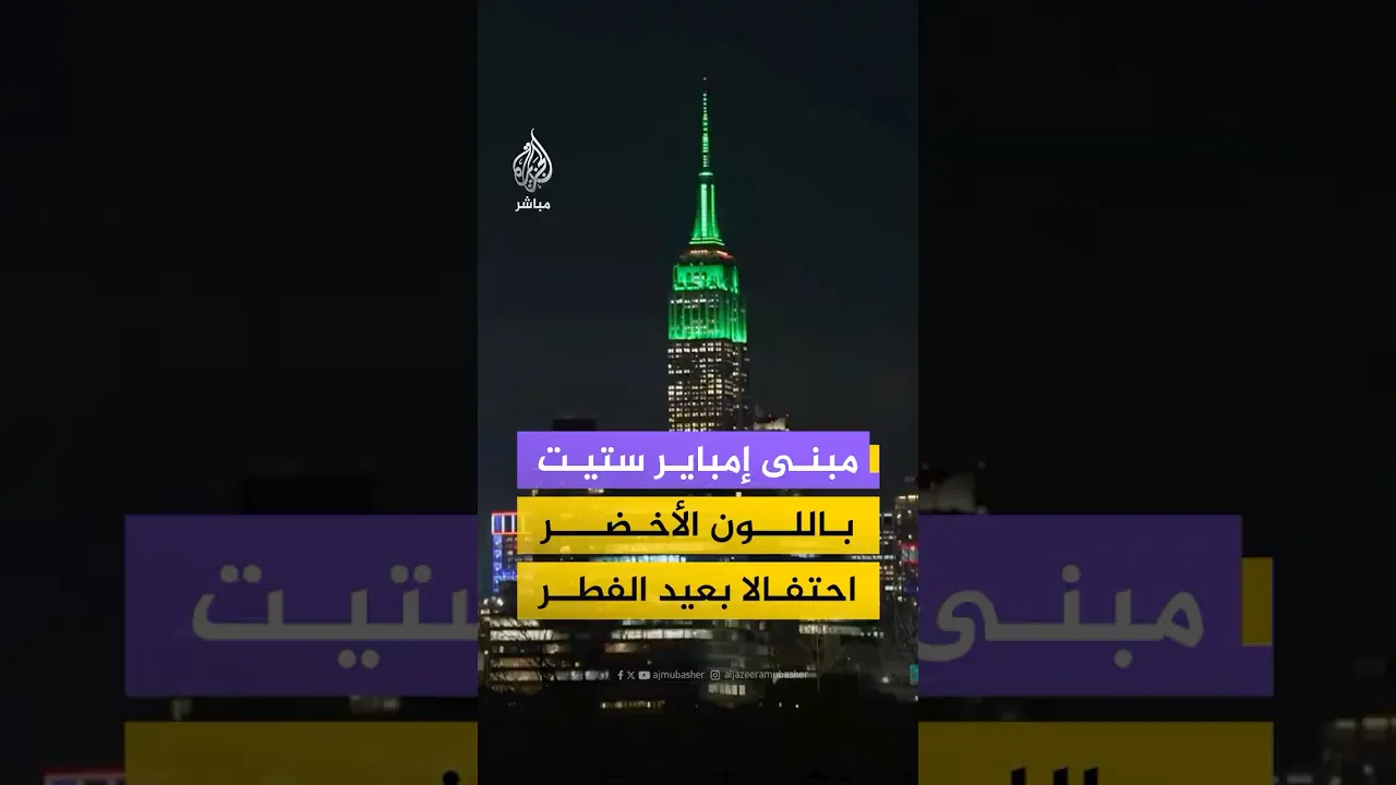 إضاءة مبنى إمباير ستيت في #نيويورك باللون الأخضر احتفالا بـ #عيد_الفطر المبارك
