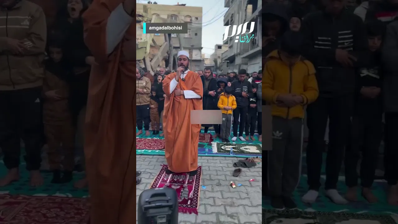 أهالي دير البلح بغزة يؤدون صلاة العيد على أنقاض مسجد ابن تيمية