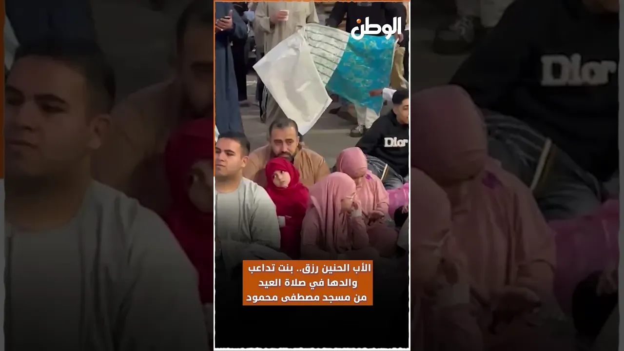 الأب الحنين رزق..طفلة تداعب والدها في صلاة العيد من مسجد مصطفى محمود