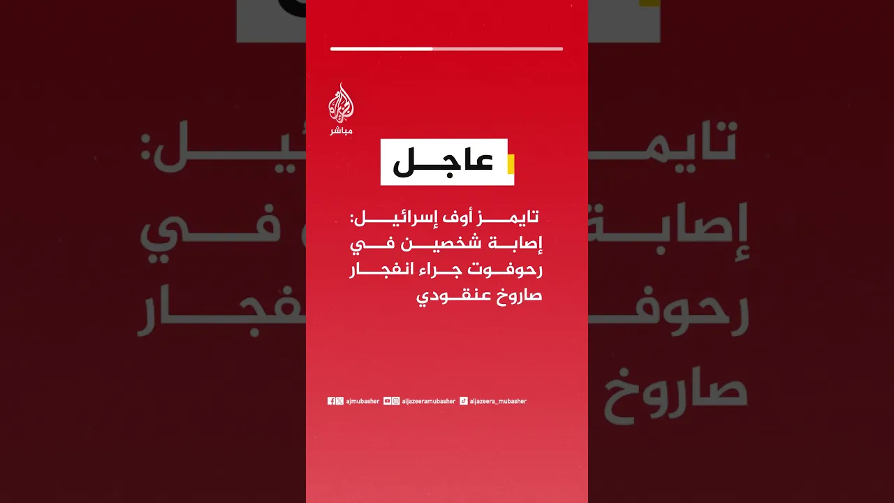 تايمز أوف إسرائيل: إصابة شخصين في رحوفوت جراء انفجار صاروخ عنقودي
