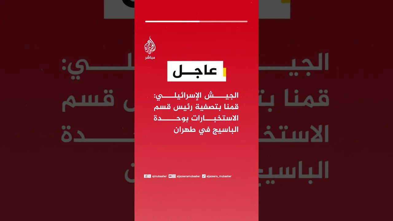 عاجل | الجيش الإسرائيلي: قمنا بتصفية رئيس قسم الاستخبارات بوحدة الباسيج في طهران