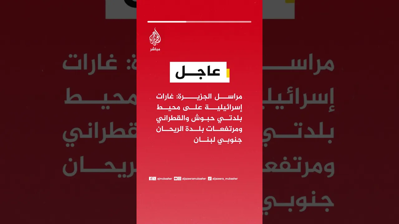 عاجل | مراسل الجزيرة: غارات إسرائيلية على محيط بلدتي حبوش والقطراني ومرتفعات بلدة الريحان جنوبي لبنان