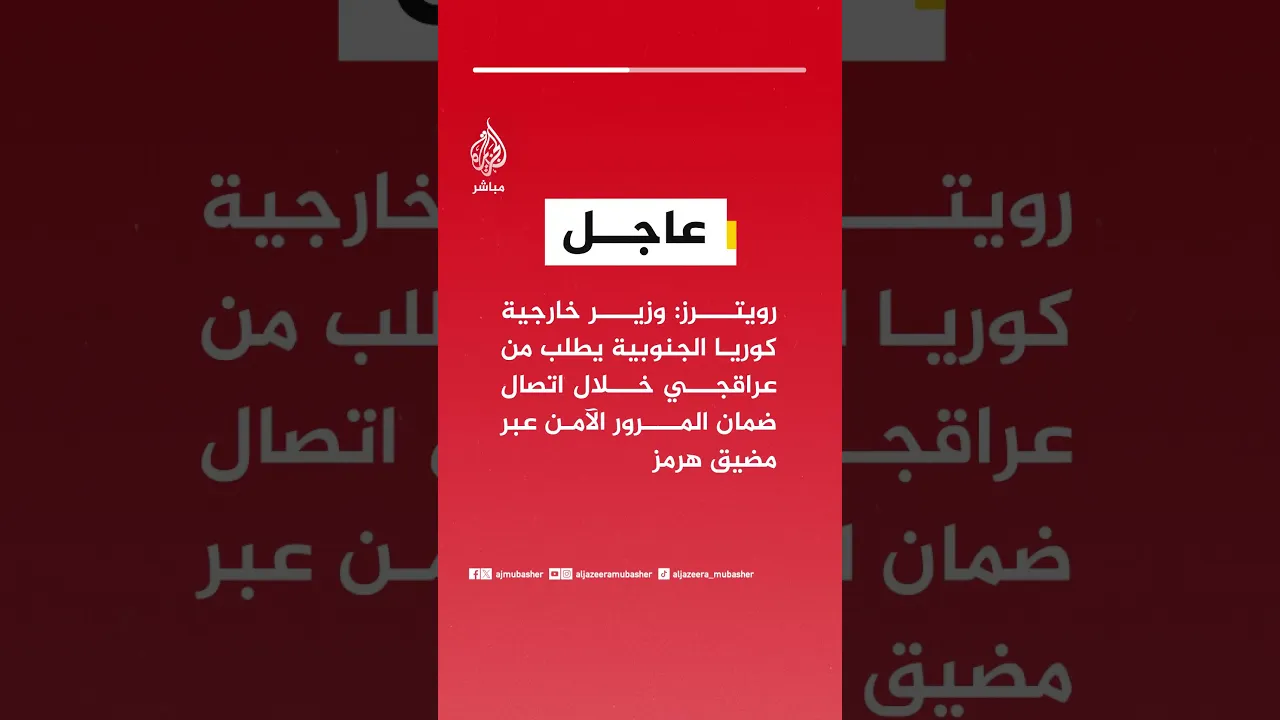 عاجل | رويترز: وزير خارجية كوريا الجنوبية يطلب من عراقجي خلال اتصال ضمان المرور الآمن عبر مضيق هرمز