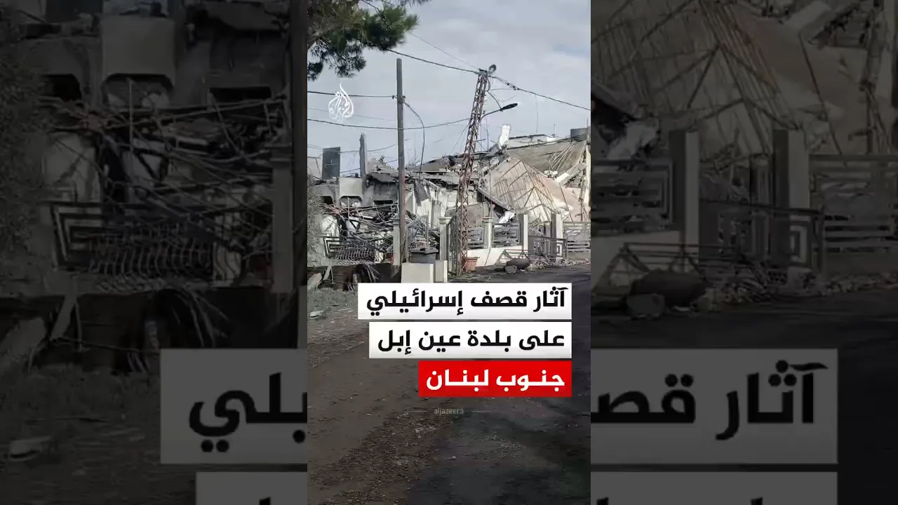 آثار قصف إسرائيلي استهدف منزلا في بلدة عين إبل بقضاء بنت جبيل جنوبي لبنان.