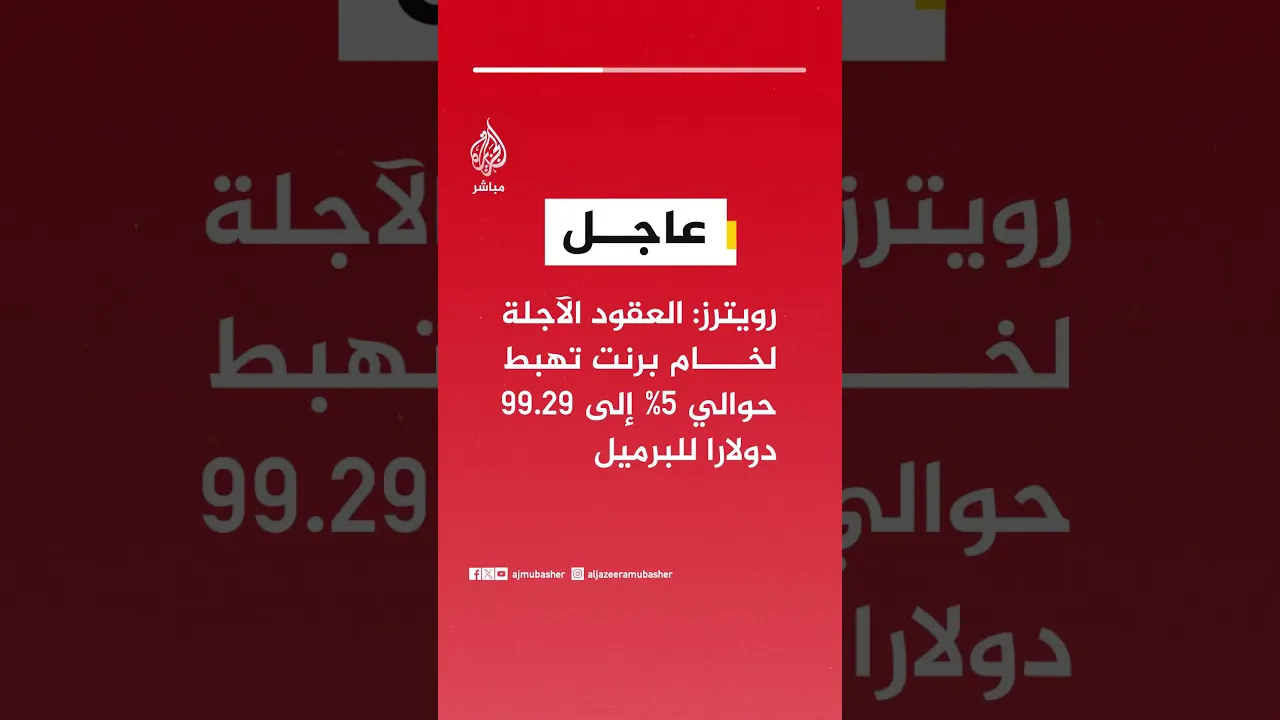 عاجل | رويترز: العقود الآجلة لخام برنت تهبط حوالي 5% إلى 99.29 دولارا للبرميل