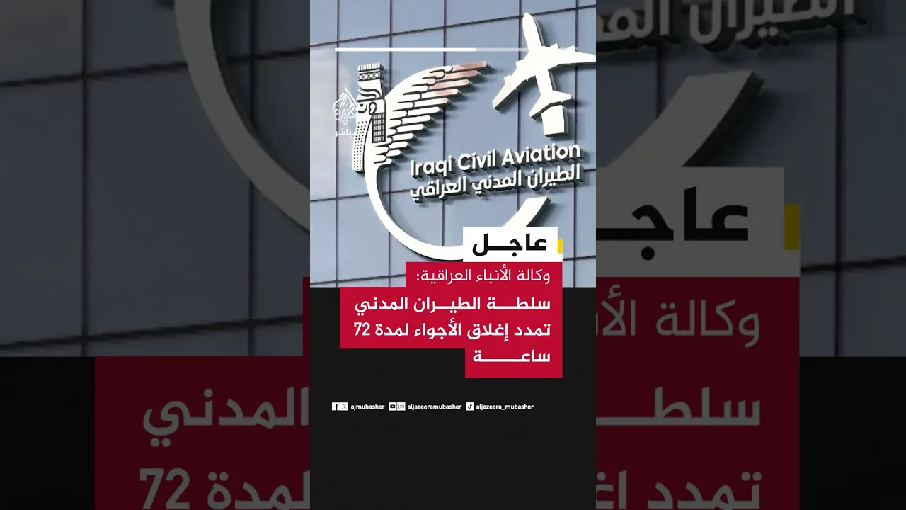 عاجل | وكالة الأنباء العراقية: سلطة الطيران المدني تمدد إغلاق الأجواء لمدة 72 ساعة