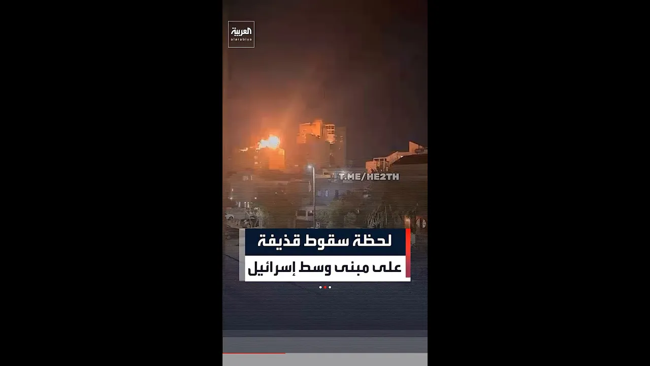 لحظة سقوط قذيفة من صاروخ عنقودي إيراني على مبنى في جفعات شموئيل وسط إسرائيل