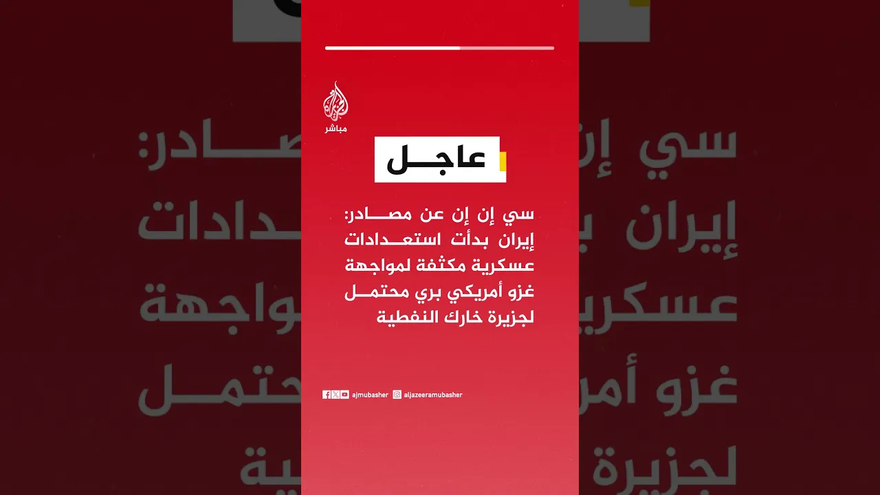 عاجل | سي إن إن عن مصادر: إيران بدأت استعدادات عسكرية مكثفة لمواجهة غزو أمريكي بري محتمل لجزيرة خارك النفطية