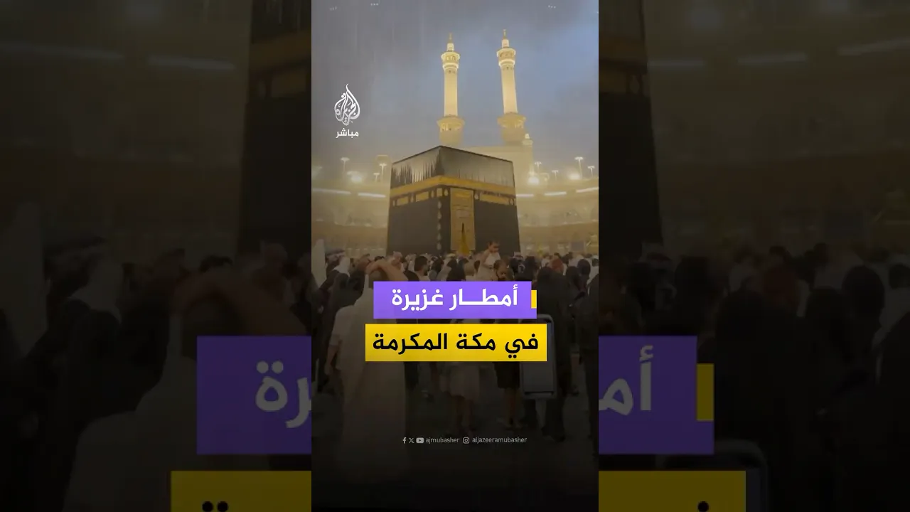 منظر مهيب.. هطول أمطار غزيرة على الكعبة المشرفة تزامنا مع طواف المعتمرين 🕋 🌧️
