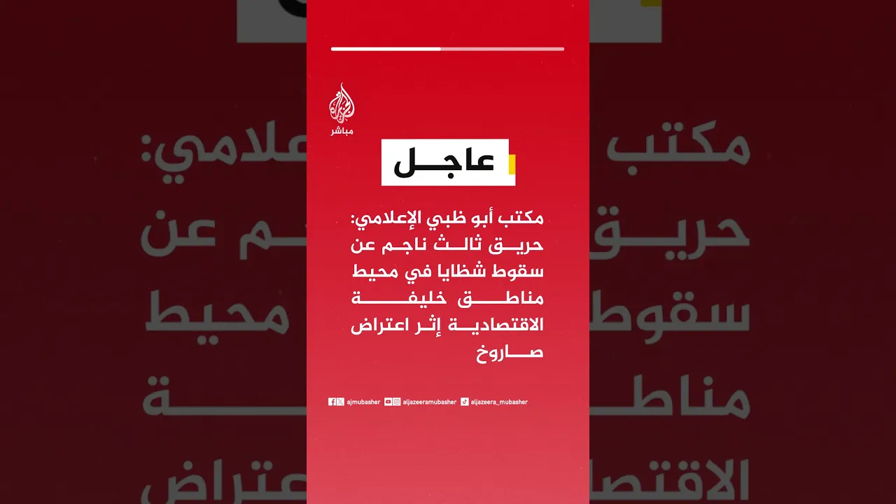 عاجل | مكتب أبو ظبي الإعلامي: ارتفاع عدد الإصابات نتيجة سقوط الشظايا في محيط منطقة خليفة الاقتصادية إلى 6 والسيطرة على الحرائق الثلاثة