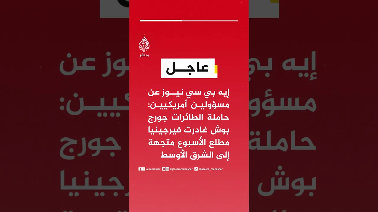 عاجل | إيه بي سي نيوز عن مسؤولين أمريكيين: حاملة الطائرات جورج بوش غادرت فيرجينيا مطلع الأسبوع متجهة إلى الشرق الأوسط