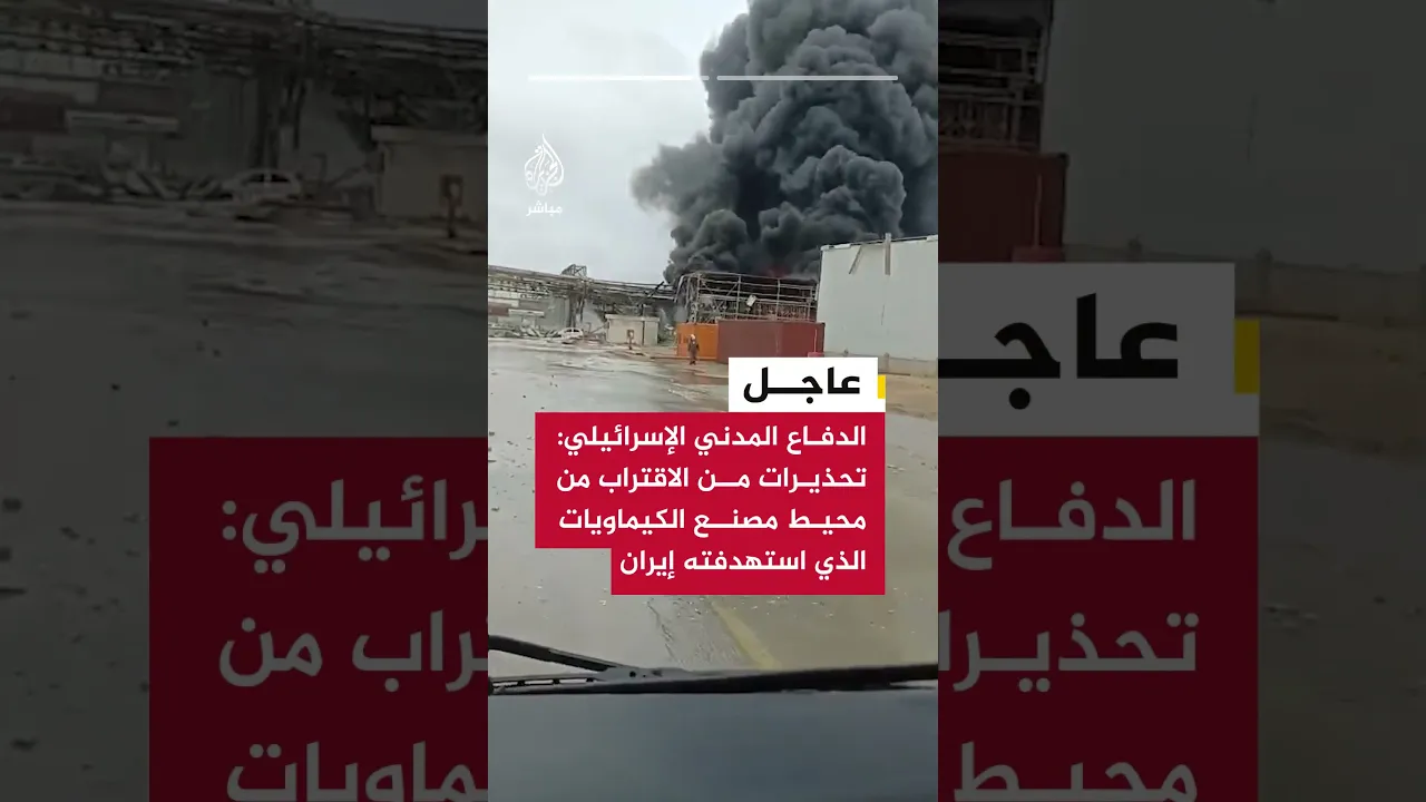 عاجل | الدفاع المدني الإسرائيلي: تحذيرات من الاقتراب من محيط مصنع الكيماويات الذي استهدفته إيران
