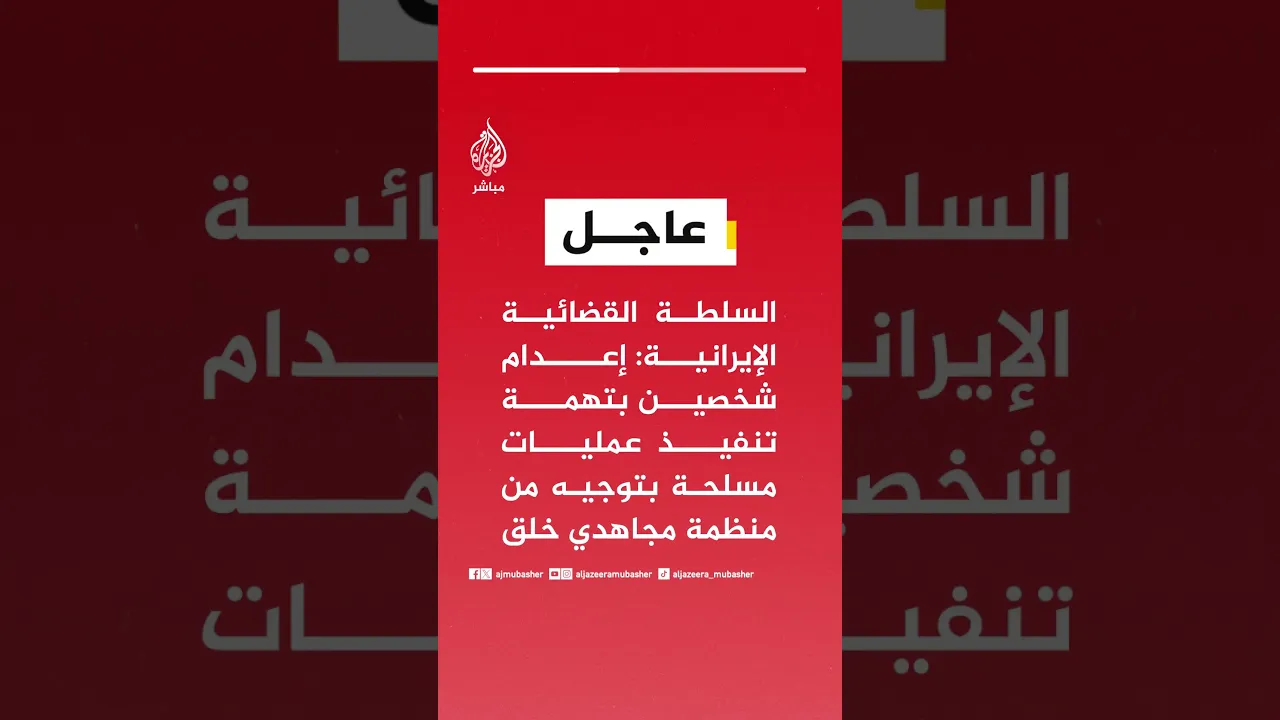 عاجل | السلطة القضائية الإيرانية: إعدام شخصين بتهمة تنفيذ عمليات مسلحة بتوجيه من منظمة مجاهدي خلق