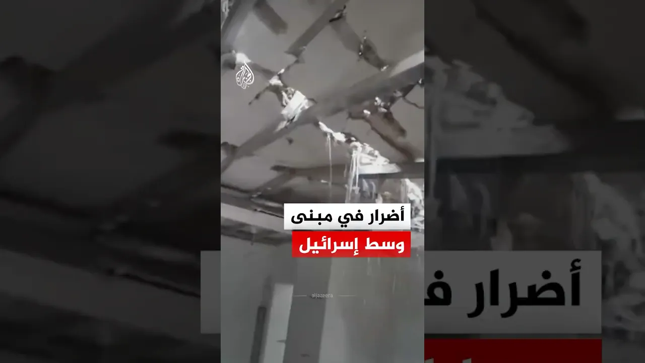 لقطات توثق أضرارا في مبنى بتل تكفا شمال شرق تل أبيب جراء سقوط شظايا صاروخية إيرانية