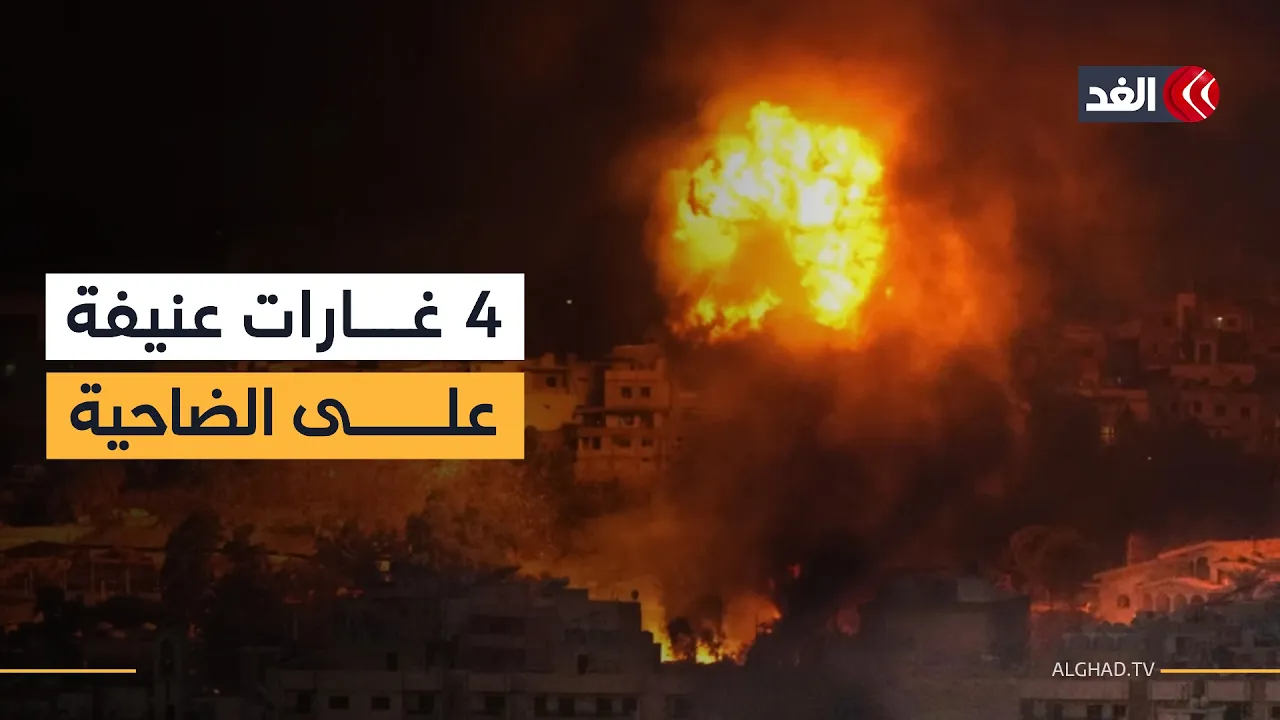 شن الطيران الحربي الإسرائيلي بشن أربع غارات جوية عنيفة استهدفت مربعات أمنية ومنشآت في قلب الضاحية الجنوبية لبيروت مما أدى لدمار هائل في الأبنية السكنية وتصاعد سحب كثيفة من الغبار والدخان غطت سماء المنطقة بالكامل.. التفاصيل مع ليلى خليل