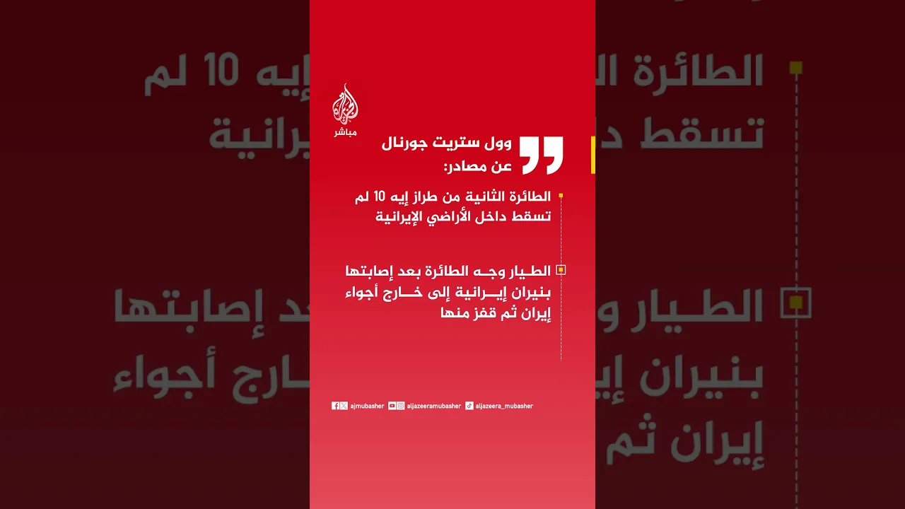 وول ستريت جورنال عن مصادر: الطائرة الثانية من طراز إيه ١٠ لم تسقط داخل الأراضي الإيرانية