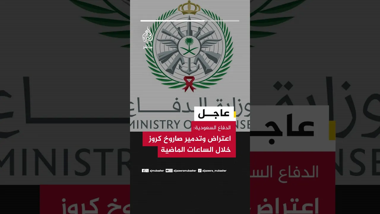 عاجل |  الدفاع #السعودية: اعتراض وتدمير صاروخ كروز خلال الساعات الماضية