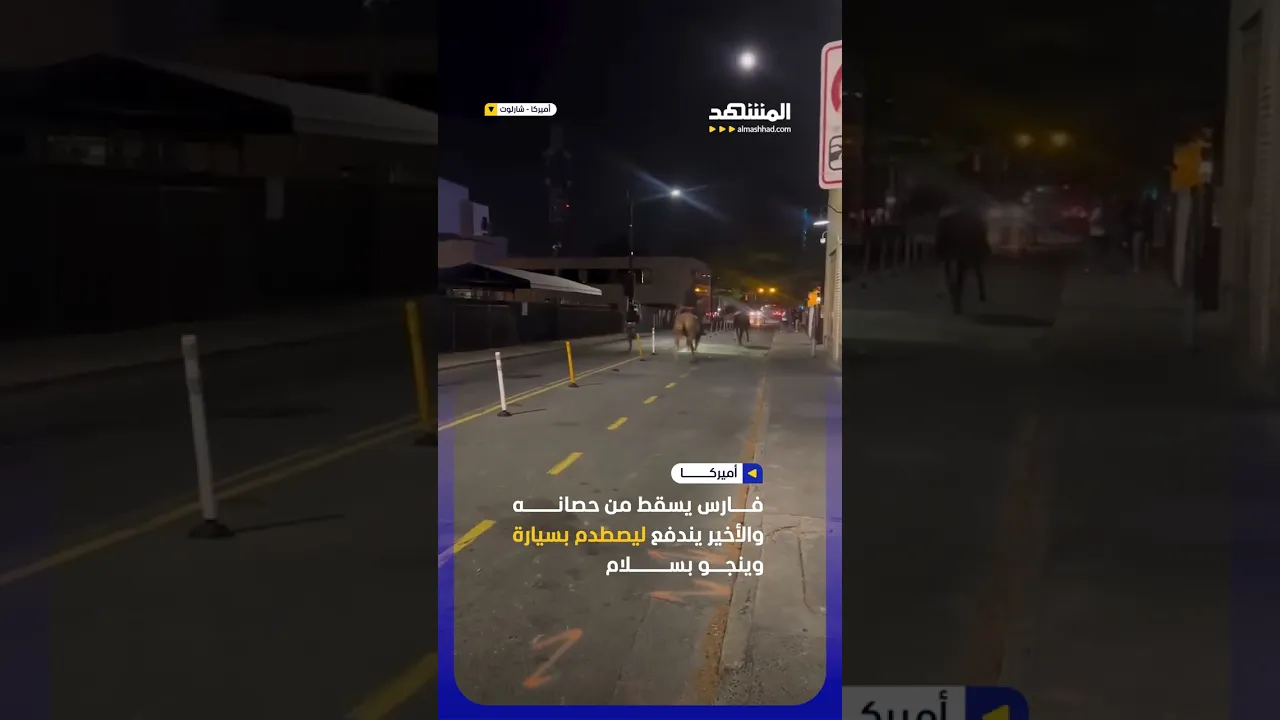 فارس يسقط من حصانه والأخير يندفع ليصطدم بسيارة #اخبار_المشهد #اأميركا #المشهد