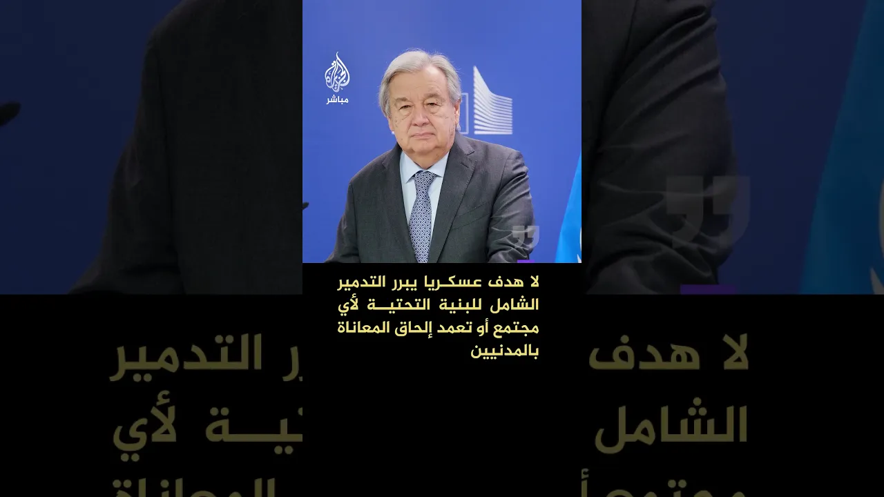 الأمين العام للأمم المتحدة: لا هدف عسكريا يبرر التدمير الشامل للبنية التحتية لأي مجتمع