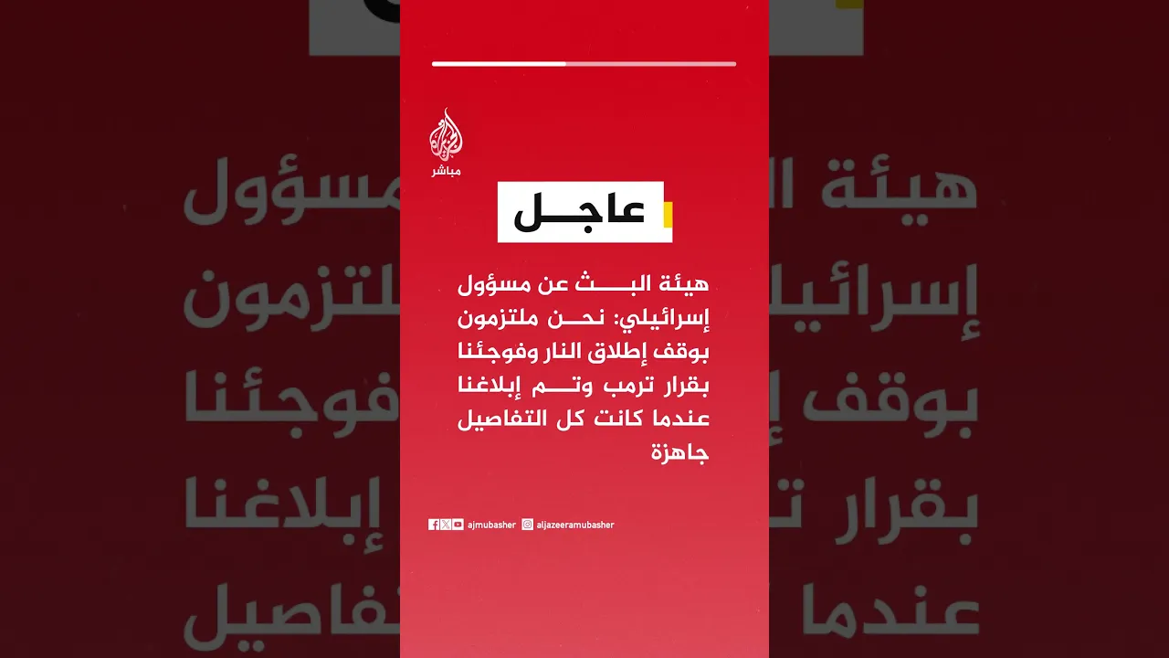 عاجل | هيئة البث عن مسؤول إسرائيلي: ملتزمون بوقف إطلاق النار وفوجئنا بقرار ترمب