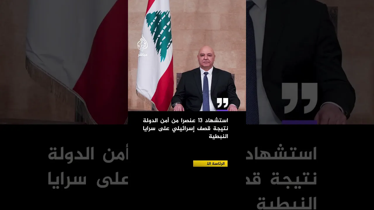 الرئاسة اللبنانية: استشهاد 13عنصرا من أمن الدولة نتيجة قصف #إسرائيلي على سرايا النبطية