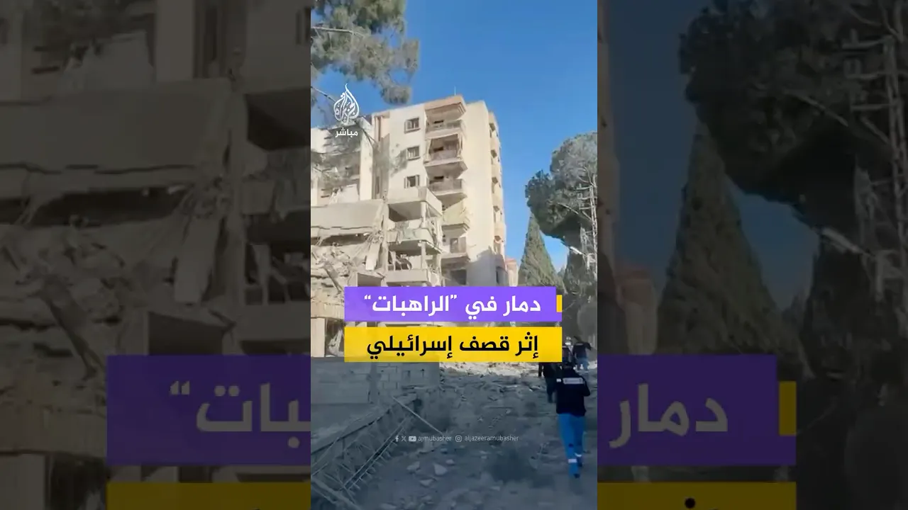 مشاهد توثق دمارا في حي الراهبات بقضاء النبطية جنوبي لبنان إثر غارات إسرائيلية استهدفت بعض الأحياء