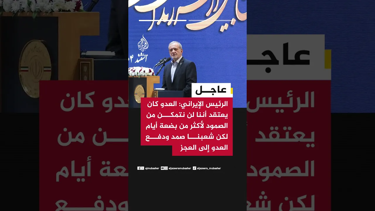 الرئيس الإيراني: العدو كان يعتقد أننا لن نتمكن من الصمود لأكثر من بضعة أيام لكن شعبنا صمد