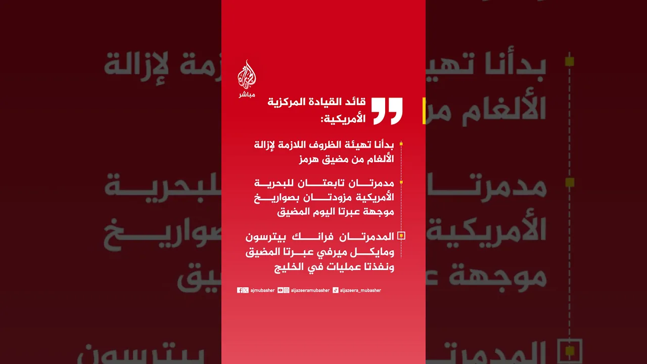 عاجل | قائد القيادة المركزية الأمريكية: