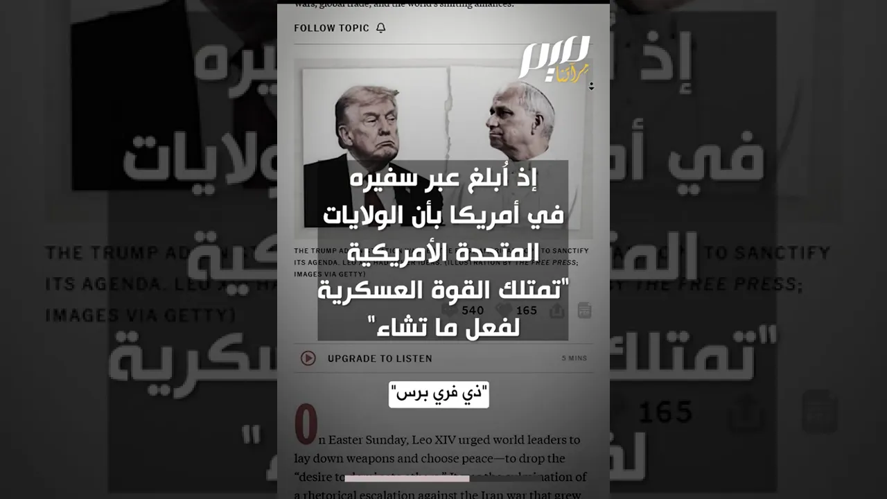 موقف حازم من بابا الفاتيكان تجاه دونالد ترامب وزمرته في أعقاب الح رب على إيران ولبنان.. في الأثناء، مشايخ السلطان لهم رأي آخر!
