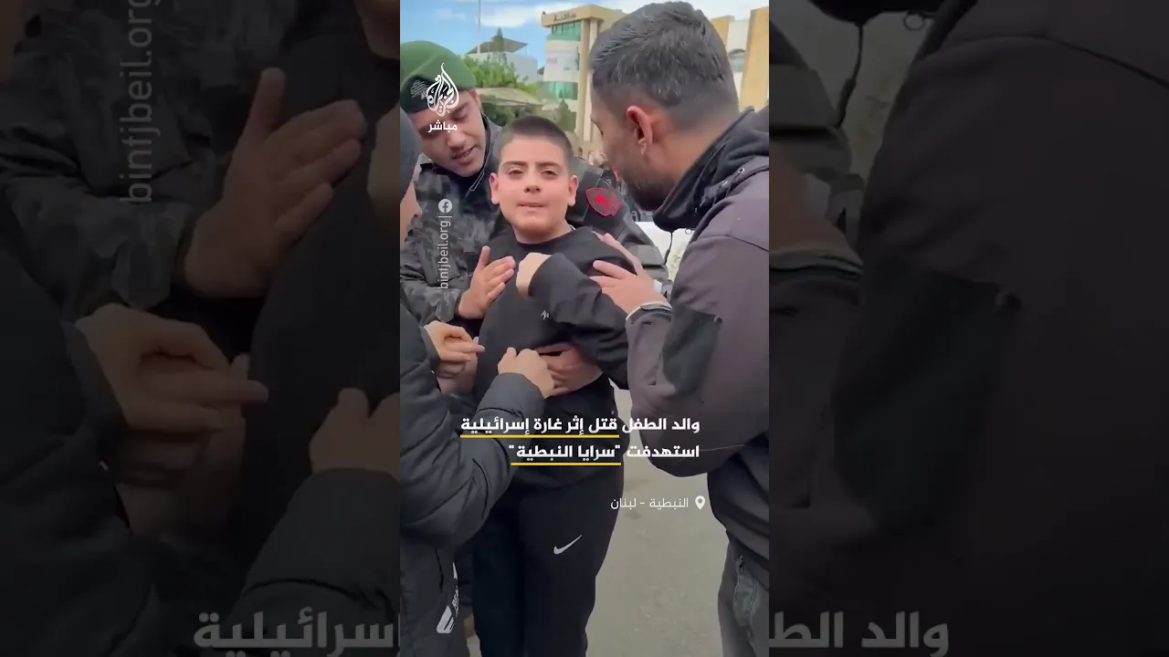 طفل لبناني يوصي عائلته بعدم البكاء على والده الذي يعمل في أمن الدولة اللبناني، وقد راح ضحية غارةٍ إسرائيلية على مبنى سرايا النبطية.