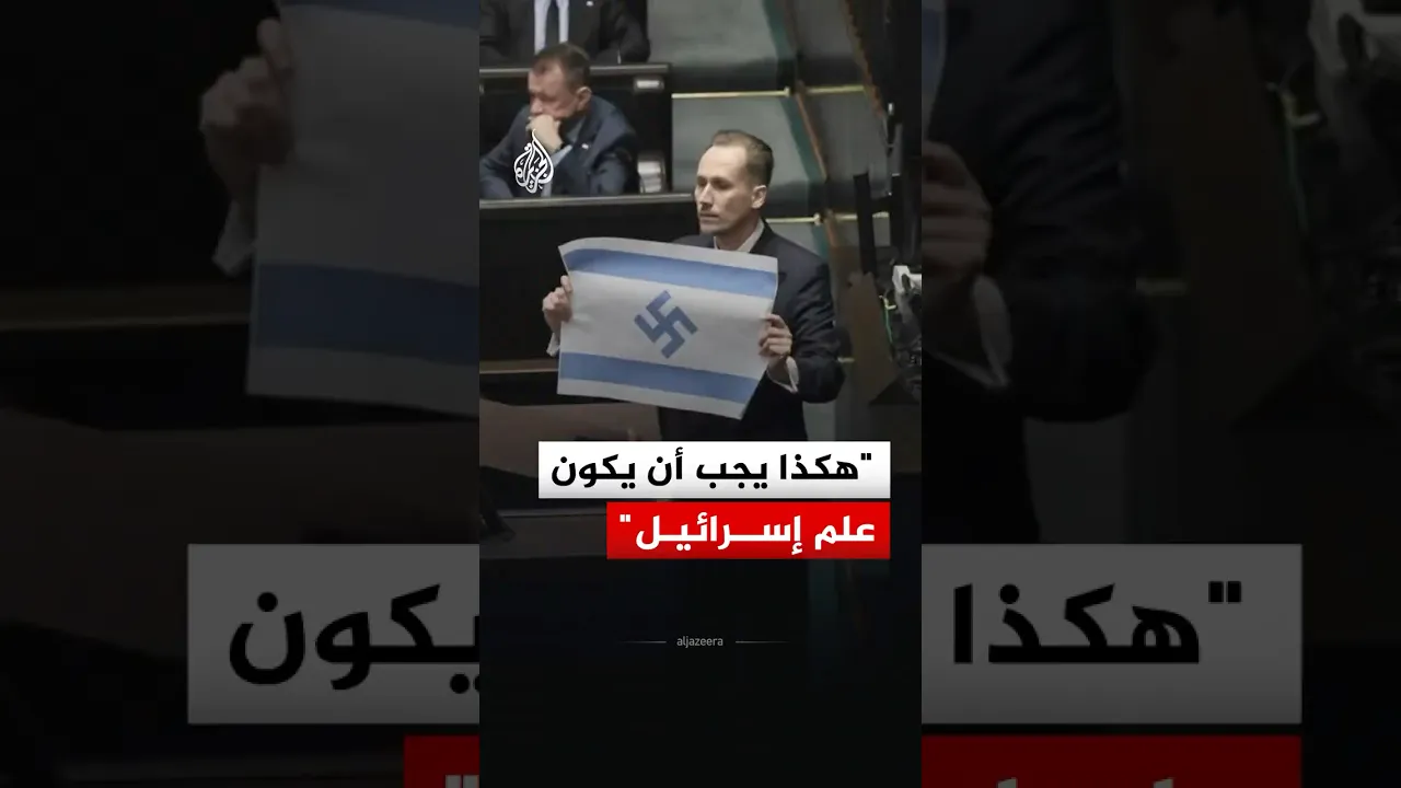 نائب بولندي يشن هجوما لاذعا على إسرائيل ويتهمها بارتكاب إبادة جماعية ملوحا داخل البرلمان بعلم إسرائيلي يحمل رمز الصليب المعقوف