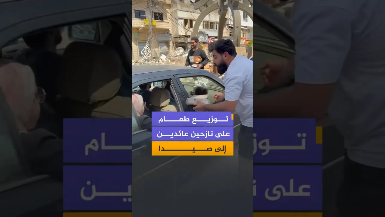 توزيع طعام على نازحين عائدين إلى صيدا
