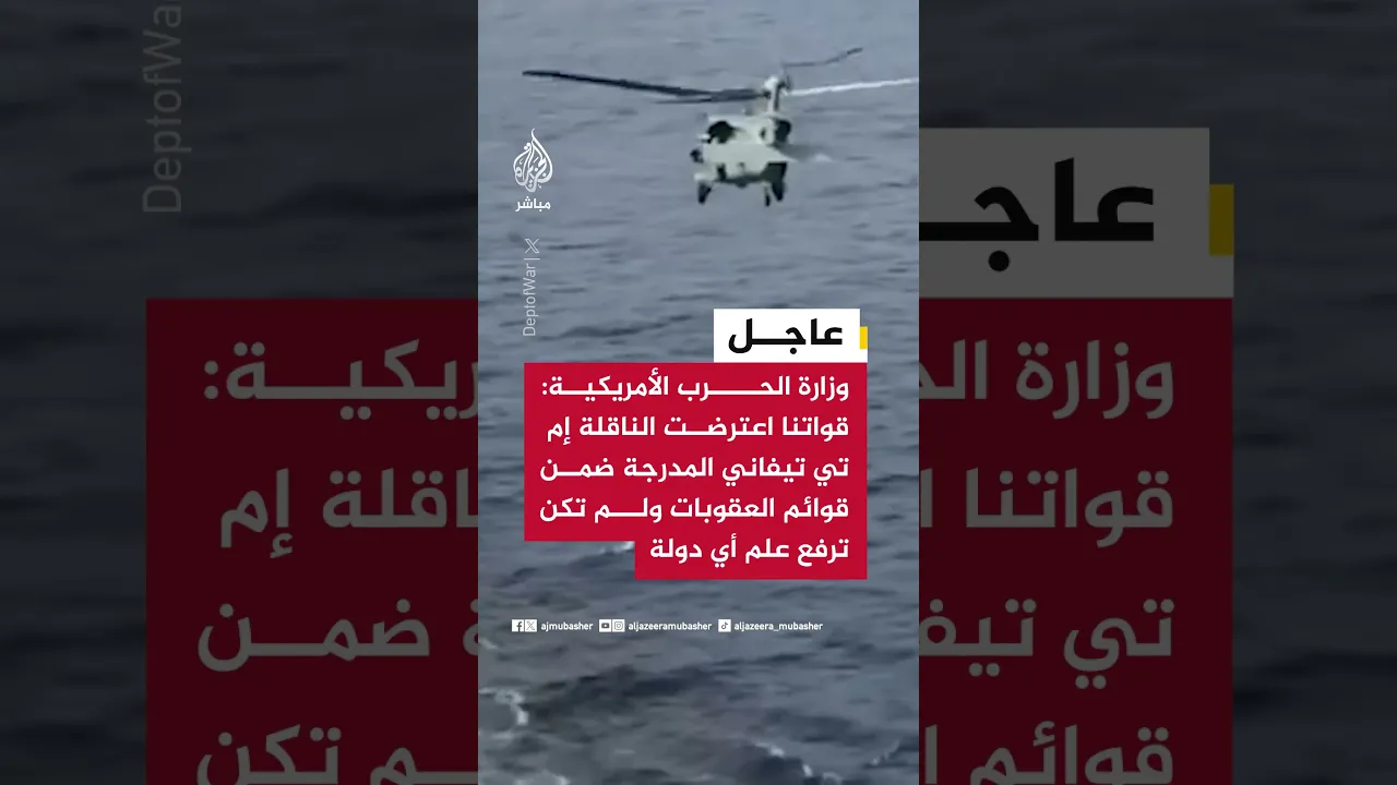 📌 وزارة الحرب الأمريكية: قواتنا اعتلت الناقلة إم تي تيفاني المدرجة ضمن قوائم العقوبات