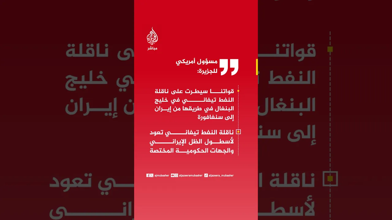 مسؤول أمريكي للجزيرة: قواتنا سيطرت على ناقلة النفط تيفاني التابعة لأسطول الظل الإيراني