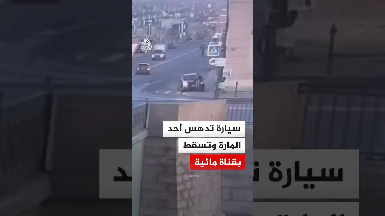 سيارة تدهس أحد المارة وتنحرف وتسقط بقناة مائية في سانت بطرسبرغ
